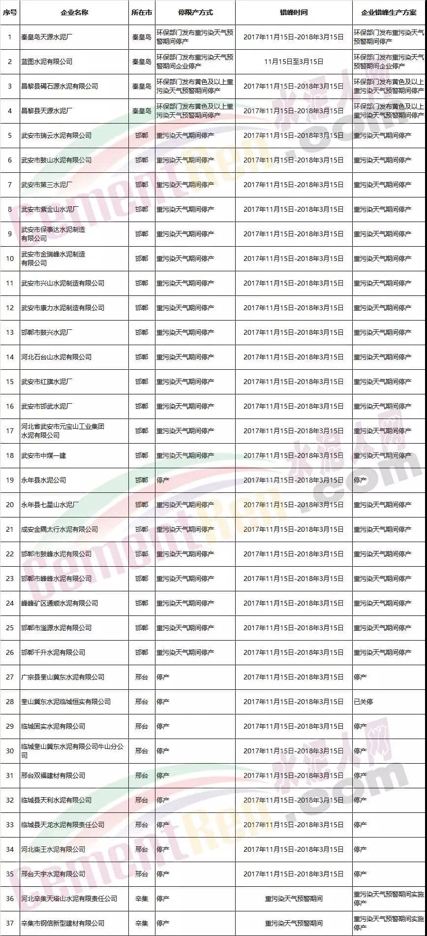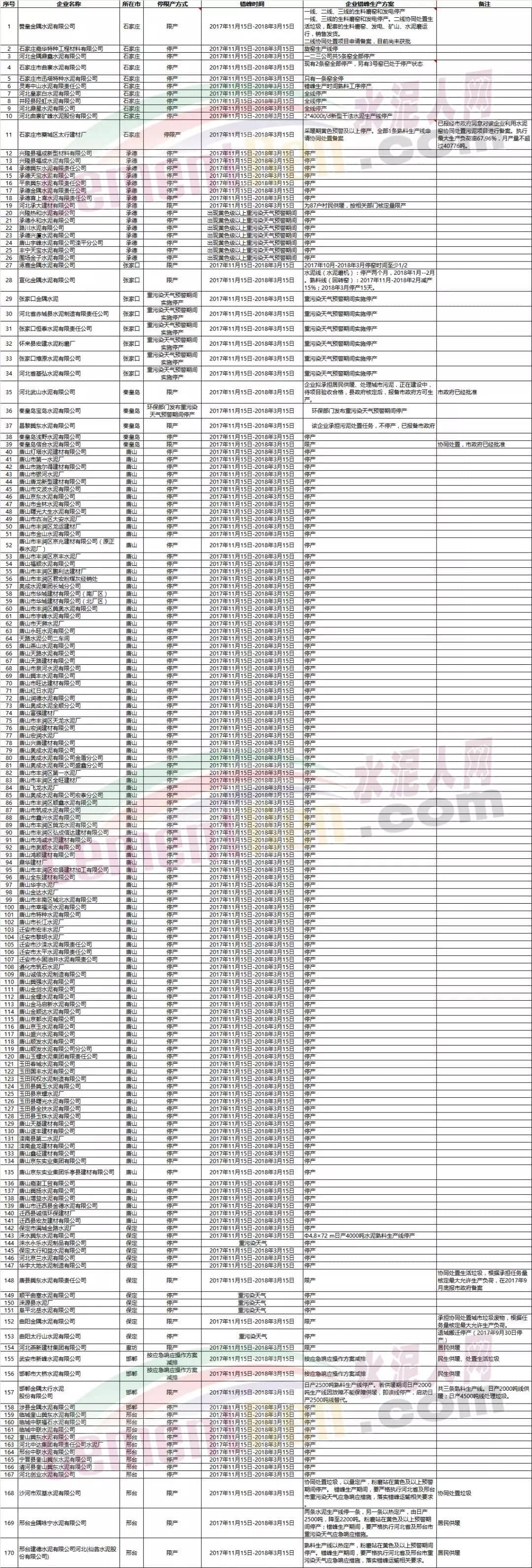 2017-2018采暖季重點(diǎn)行業(yè)錯(cuò)峰生產(chǎn)企業(yè)清單如下: