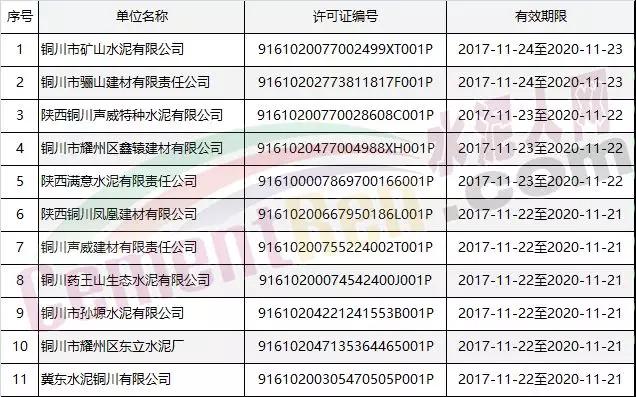 銅川市11家水泥行業(yè)