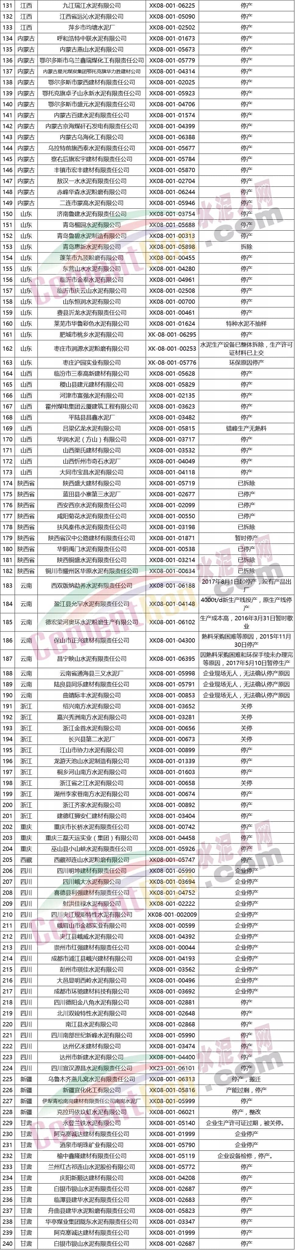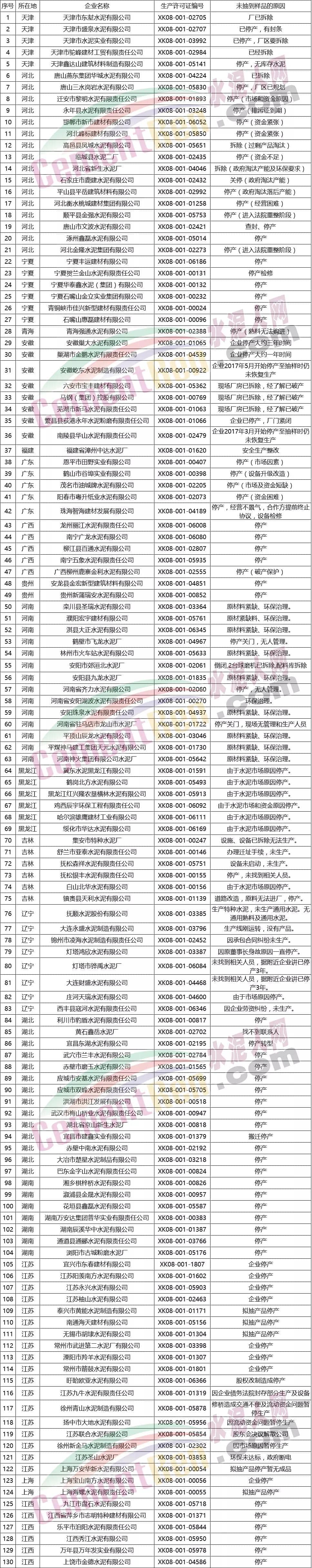 水泥產(chǎn)品連續(xù)兩年未抽到樣品的企業(yè)名單