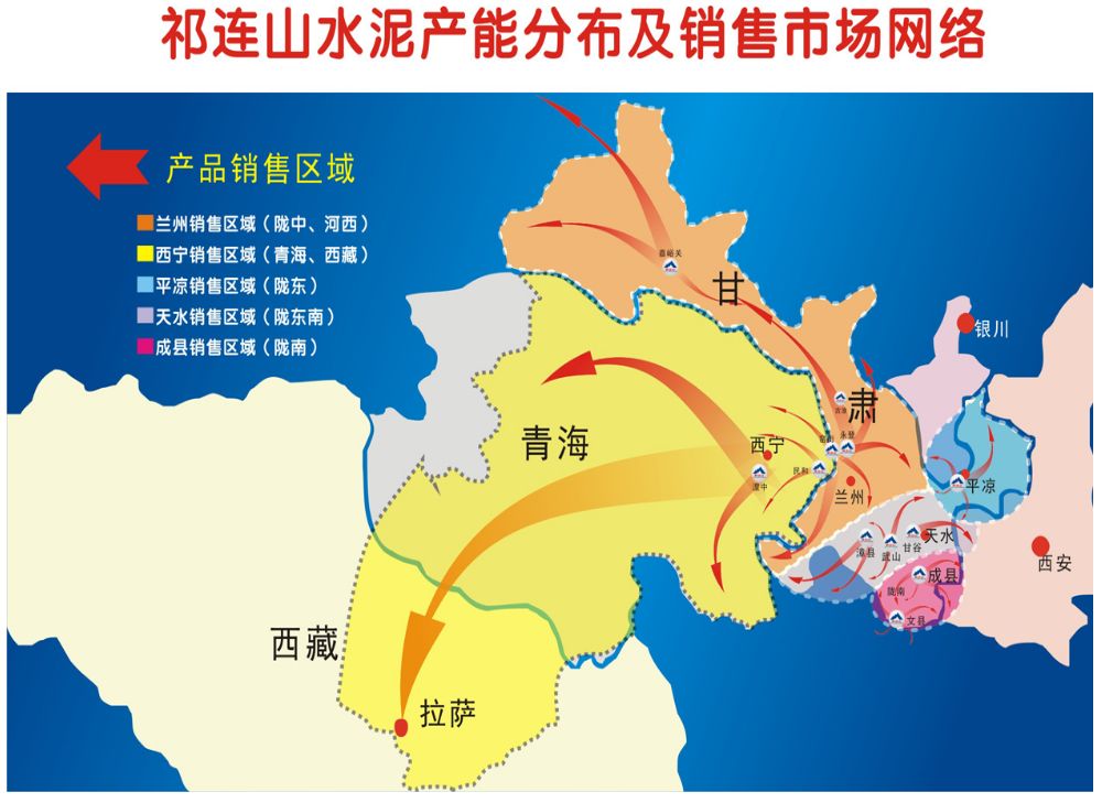 從祁連山水泥銷售市場(chǎng)網(wǎng)絡(luò)圖可以看出,祁連山水泥在西藏區(qū)域早有市場(chǎng)分布,布局西藏地區(qū)是勢(shì)在必行。