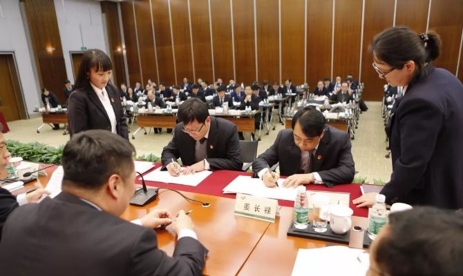 會上,公司副總經(jīng)理劉素敏宣讀了部分企業(yè)由金隅冀東水泥直接管理的文件精神和2018年績效管理目標責(zé)任書編制說明,公司財務(wù)總監(jiān)任前進宣讀了總部部門2017年度考核兌現(xiàn)意見。公司黨委書記、董事長姜長祿與23家企業(yè)及15個總部部門簽訂2018年度績效管理目標責(zé)任書。朱長君、王川等6名同志作為企業(yè)及總部部門負責(zé)人代表先后表態(tài)發(fā)言。
