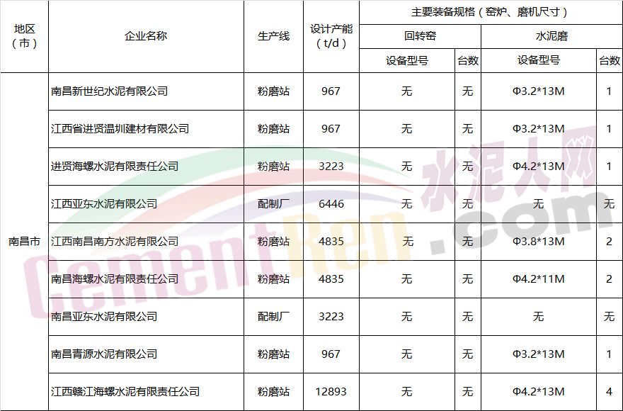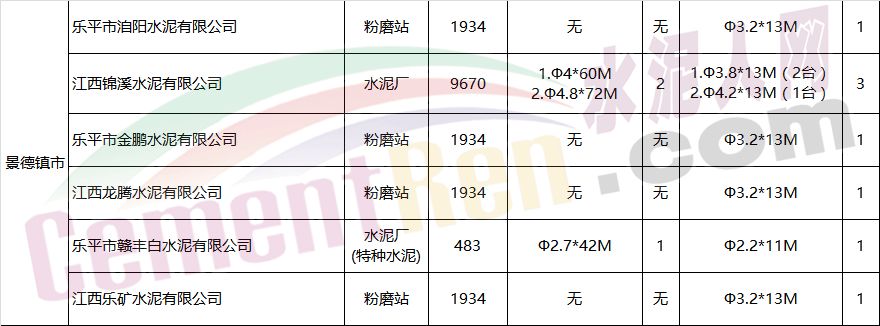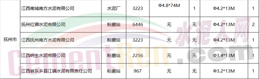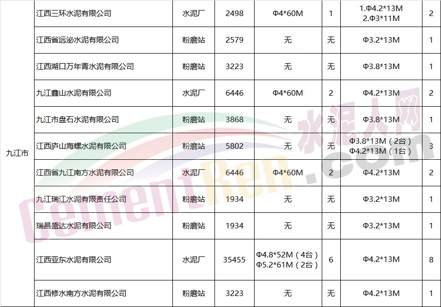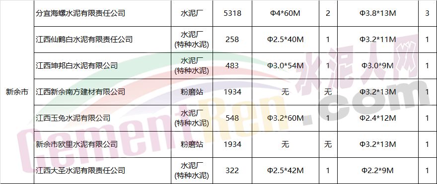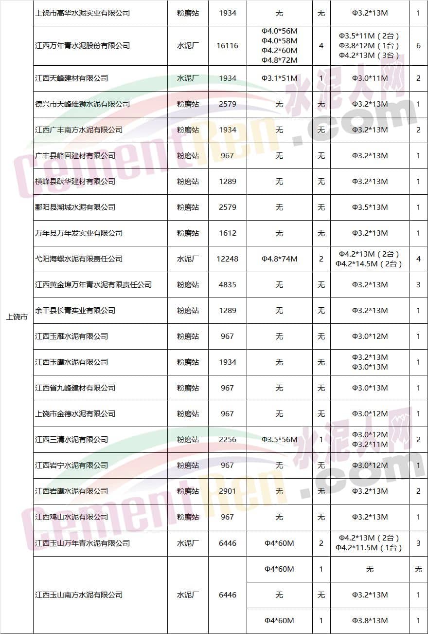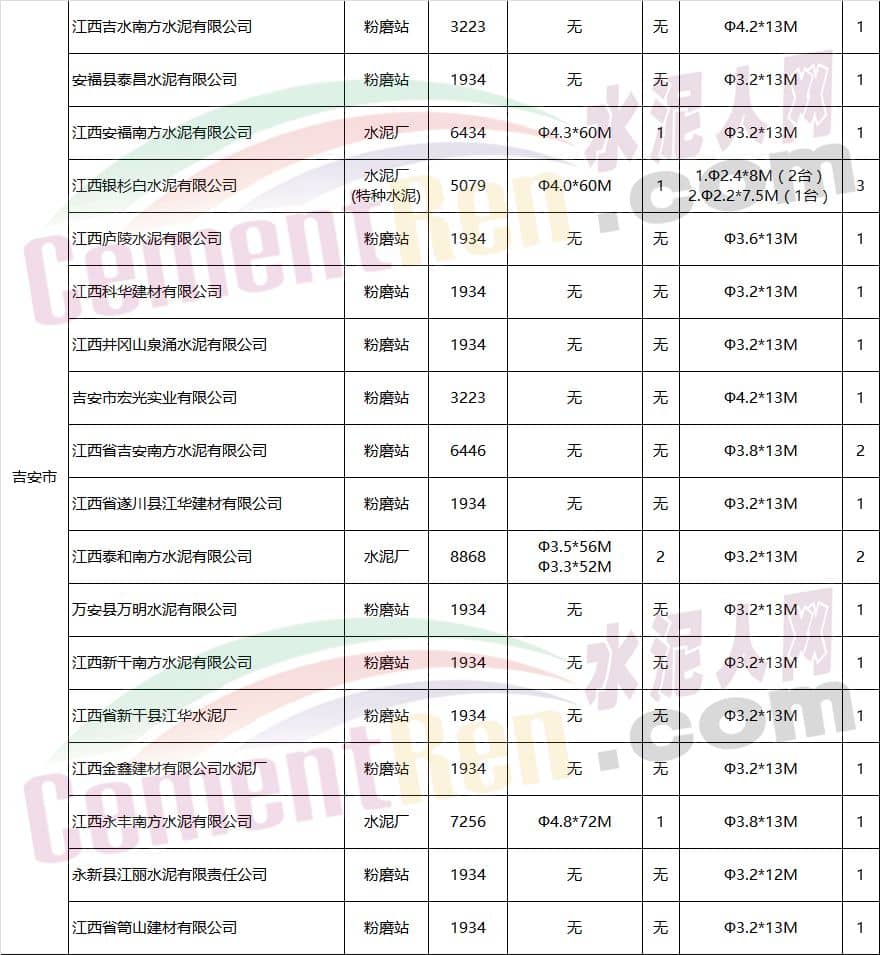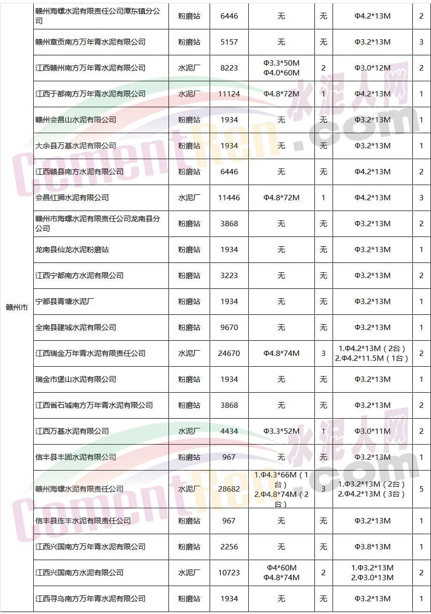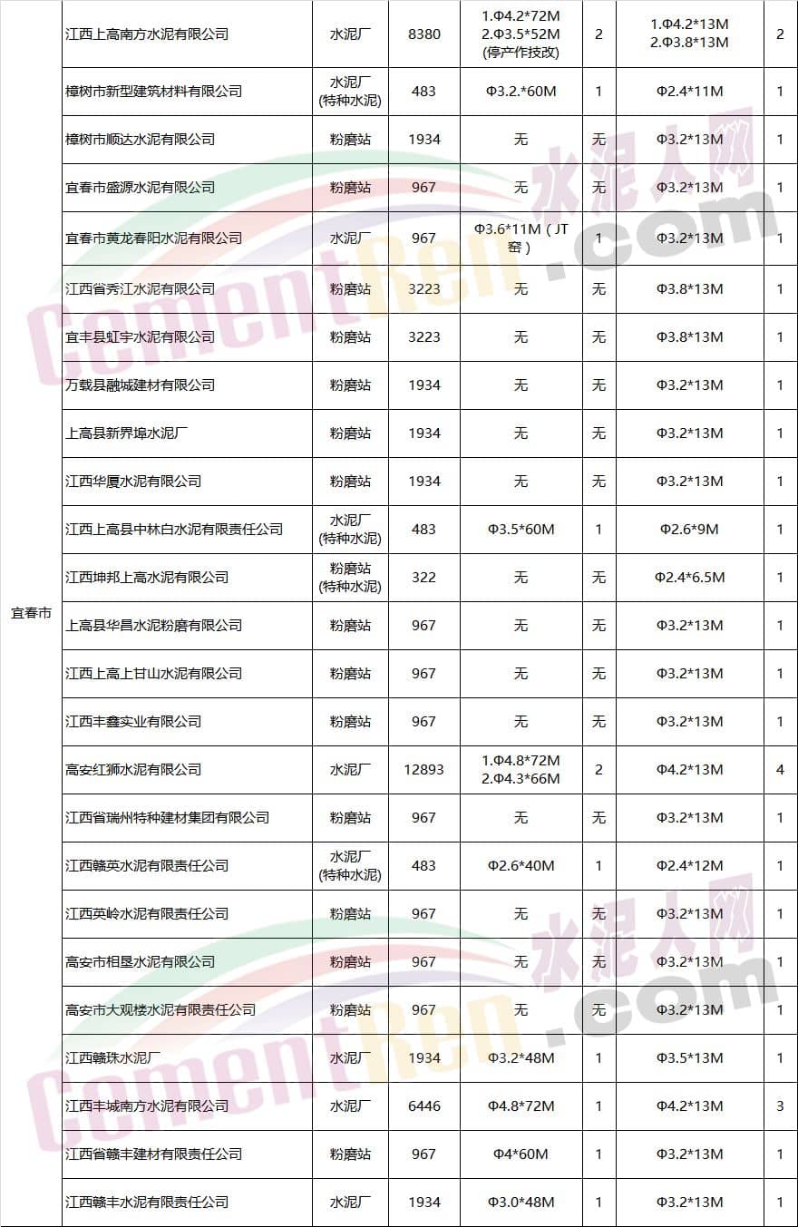江西省水泥企業(yè)及生產(chǎn)線情況表
