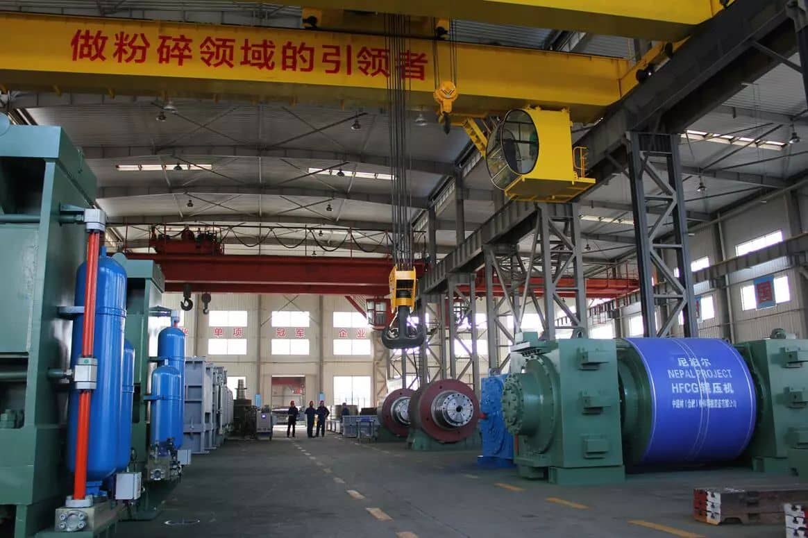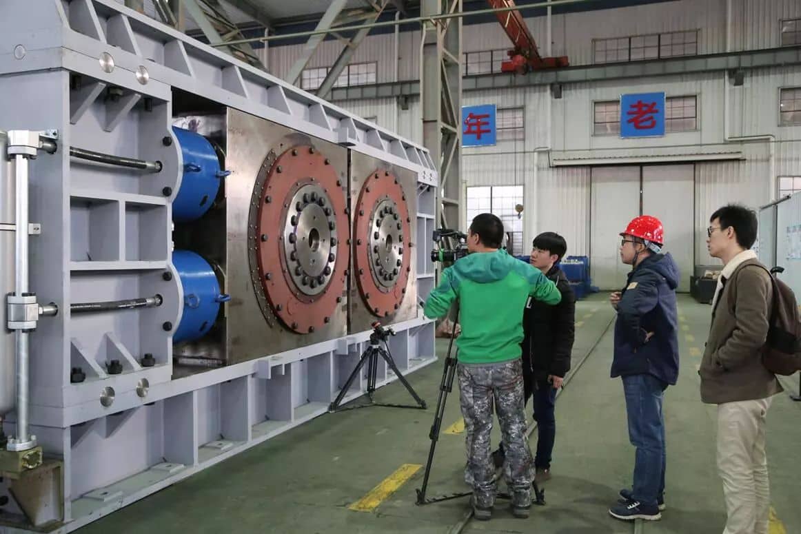 這臺我國擁有自主知識產(chǎn)權的輥壓機,直徑達2米,整機重量達438噸,各項經(jīng)濟技術指標達到了世界先進水平。像這樣超大規(guī)格的輥壓機解決了大型水泥生產(chǎn)線高效粉磨的難題,具有粉碎效率高、生產(chǎn)能力大、工藝系統(tǒng)簡捷、維護工作量小等特點,是目前國際公認粉碎效率最高的設備。輥壓機不僅應用在水泥行業(yè),也廣泛應用在冶金、礦山、有色金屬選礦及鋼渣深加工等領域。2017年1月,成功入選了國家工信部公布的第一批制造業(yè)單項冠軍示范企業(yè)名單。