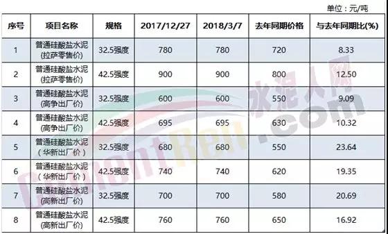 水泥人網(wǎng)信息中心數(shù)據(jù)顯示西藏拉薩區(qū)域自上年未到目前的水泥價(jià)格一直穩(wěn)定無變動,其價(jià)位仍處于全國最高水平。