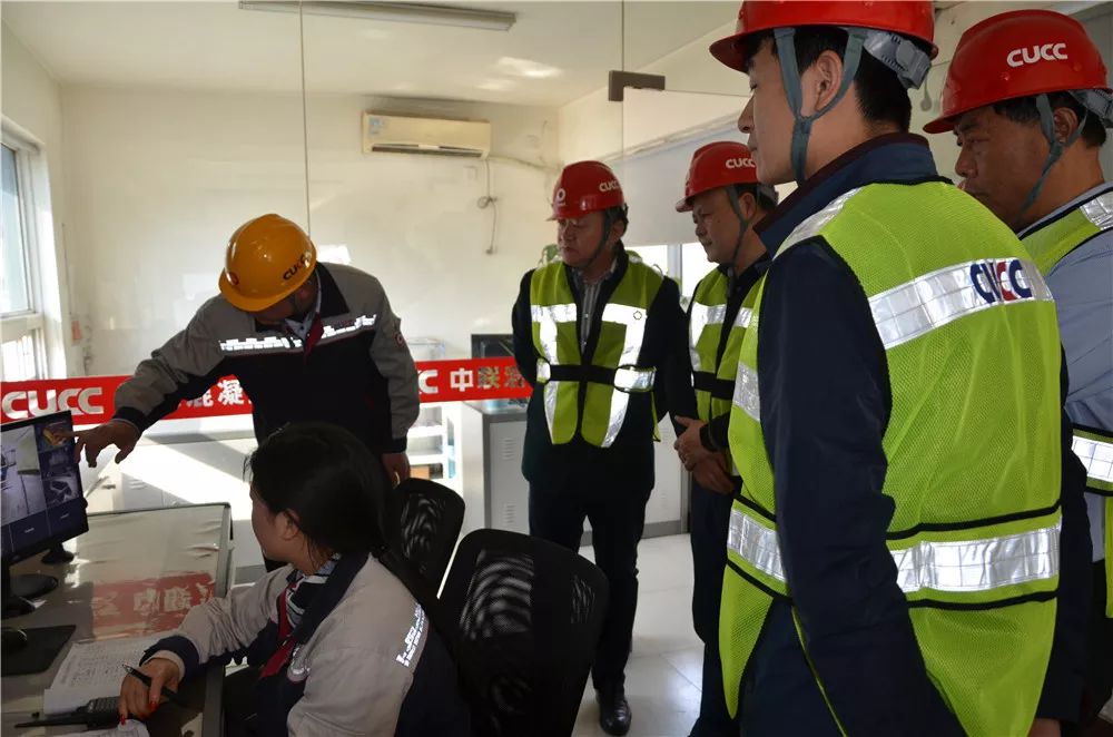 檢查組查看攪拌樓遠(yuǎn)程操作室