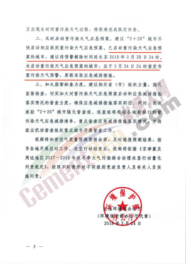 上述公函建議“2+26”城市盡快啟動相應級別重污染天氣應急預案。已啟動重污染天氣應急預案的城市,建議將預警解除時間延長至3月28日24時。未啟動重污染天氣應急預案的城市 ,應于3月24日24時前發(fā)布重污染天氣預警,果斷采取應急減排措施。同時要求各區(qū)域加大監(jiān)督檢查力度,切實加大對重污染天氣應急預案啟動和應急減排措施落實情況的督查力度,確保應急減排措施落實到位。