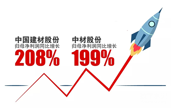 二是利潤大幅增長。中國建材股份和中材股份歸母凈利潤分別同比增長208%、199%。