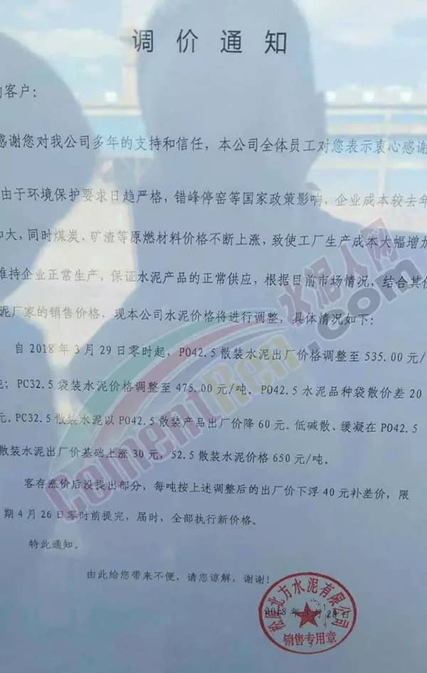 調(diào)價通知稱,客存漲價后沒有提出部分,每噸按上述調(diào)整后的出廠價下浮40元補差價,限期4月26日零時前提完。屆時,將全部執(zhí)行新價格。