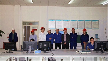 調(diào)研中,劉勇到公司中央控制室了解生產(chǎn)工藝,公司副總經(jīng)理馬超為其詳細講解公司的生產(chǎn)工藝流程。