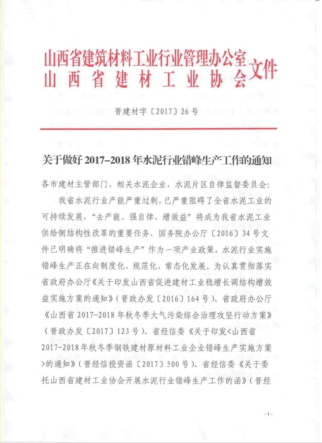 【水泥人網(wǎng)】據(jù)水泥人網(wǎng)了解,山西省根據(jù)產(chǎn)能過剩實際情況和水泥去產(chǎn)能工作目標的要求,在2018年3月16日起到2018年年底期間全省水泥行業(yè)實施錯峰生產(chǎn)停窯,停窯時間為: