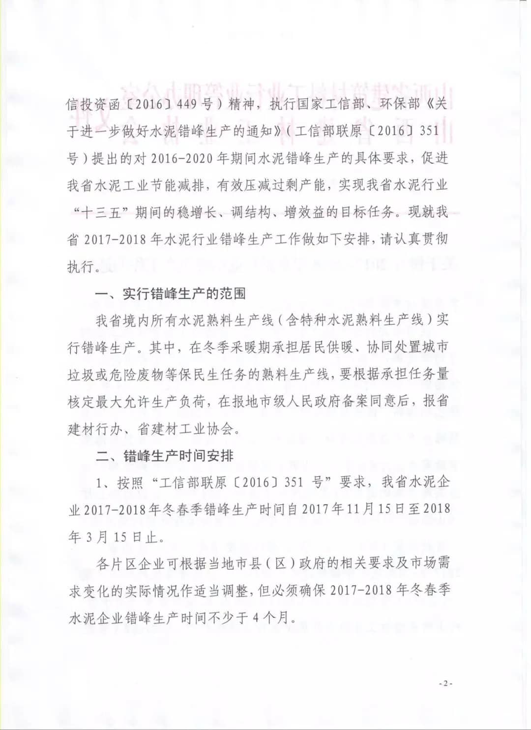 2018年11月起執(zhí)行山西省冬季錯峰生產(chǎn)規(guī)定。