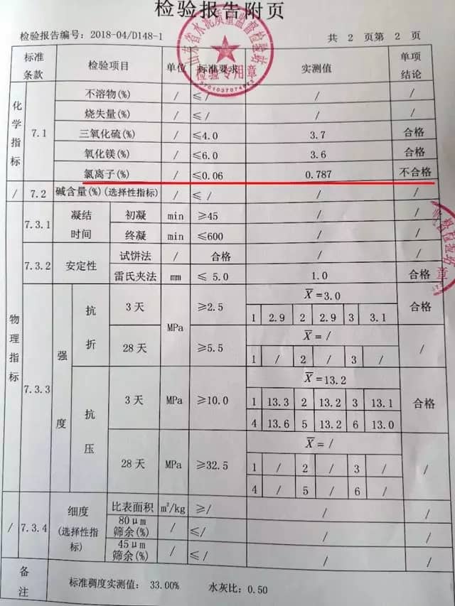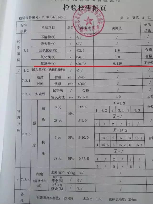 以上兩個樣品均顯示氯離子超標,被判定為不合格產品。據水泥人網通訊員反饋,以上兩個品牌水泥在山東市場多有流通。且部分批次袋重略有不足。經消費者舉報,目前28天強度項目還未出結果。