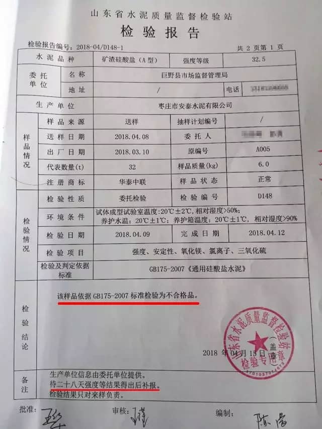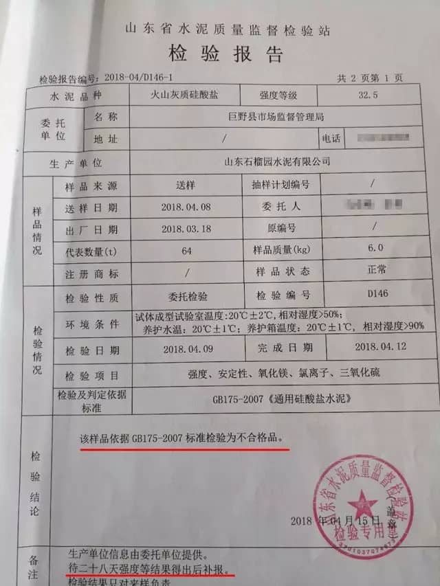 據水泥人網了解,以上兩個品牌抽檢批次,約7-8噸左右。目前,巨野縣市場監(jiān)管管理部門正依據其貨值在處理過程中。