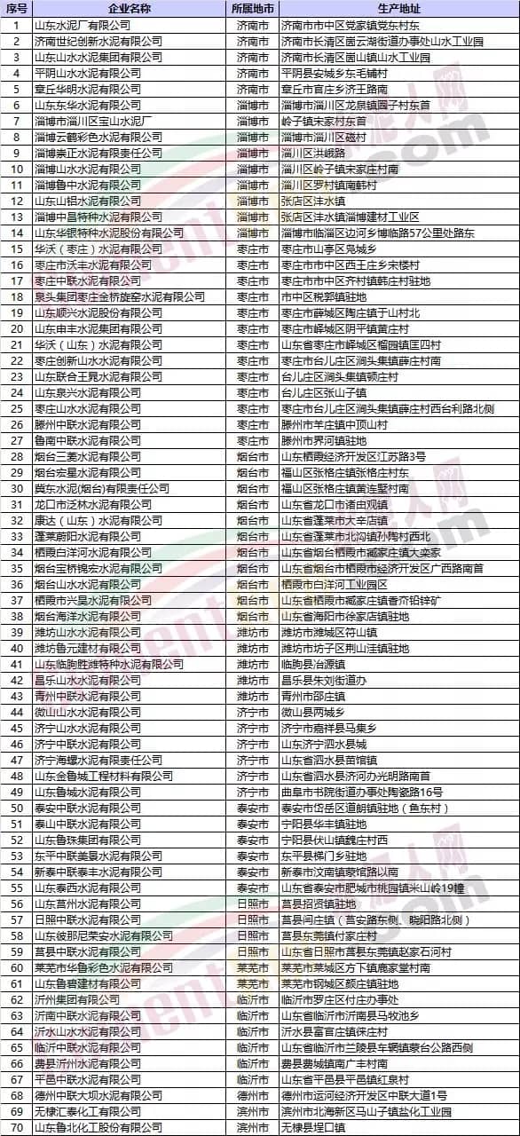 山東水泥企業(yè)名單