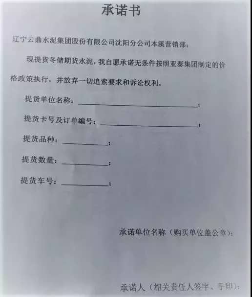 而且據(jù)爆料人表示,當時遼寧亞泰在進行收冬儲水泥款項時,并沒有與經(jīng)銷商簽訂協(xié)議或提供收據(jù)。雖然當時經(jīng)銷商們也存有疑慮,但考慮到和遼寧亞泰長期的合作關系,最終也都按此執(zhí)行,只是大多把匯款憑證和與銷售人員的聯(lián)絡記錄作為依據(jù)存留。到2018年3月份,經(jīng)銷商們收到了遼寧亞泰發(fā)放的提貨卡。