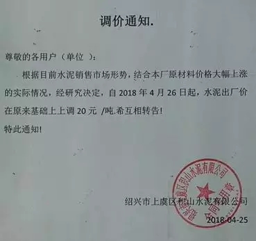 潤心固江山、豐業(yè)酬永恒!根據(jù)當前市場形勢,經(jīng)公司研究決定,自2018年04月26日8:00時起,對各規(guī)格袋裝水泥、散裝水泥上調(diào)20元/噸,友情提醒:如您繼續(xù)安排車輛到我公司提貨,則視為您同意和確認此次價格調(diào)整。