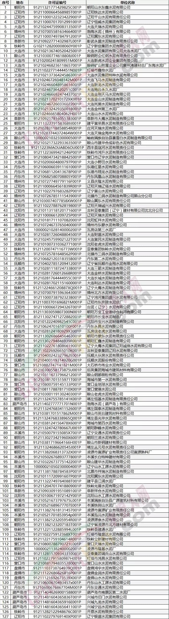 遼寧水泥企業(yè)名單