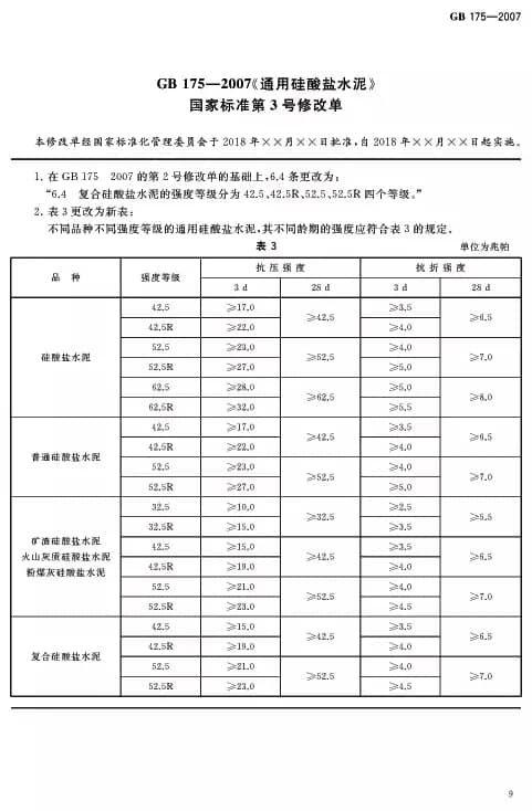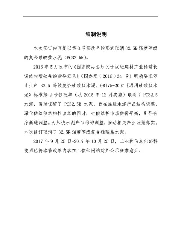 一、《通用硅酸鹽水泥》強制性國家標準第3號修改單(報批稿)