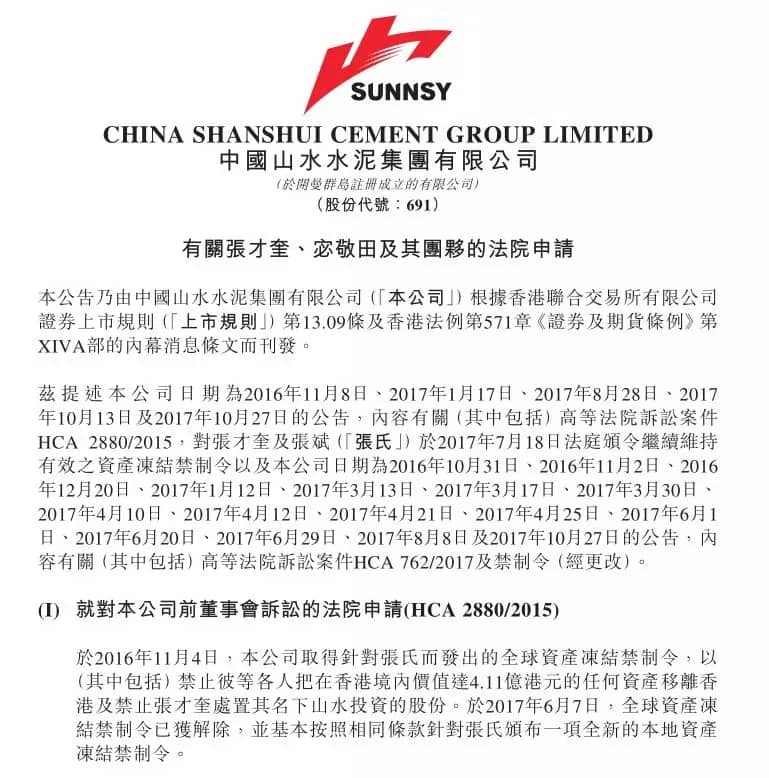 山水水泥董事會對上述行為采取非常嚴肅的處理態(tài)度,并將對所有責任方采取一切必要的措施追究損失。因此,山水水泥已指示其法律顧問向法院追加申請,增加根據(jù)禁制令所需凍結(jié)的資產(chǎn)金額至不少于人民幣20億元及申請對宓敬田及其團伙于香港持有的資產(chǎn)和證券實施限制性措施,以反映上述由宓敬田及其團伙對山東山水造成的損失。鑒于宓敬田及其團伙牽涉的非法行為所涉及的金額特別巨大,公司正就加入其他與上述損失有關(guān)的于山東山水的所有責任人作為案件被告的可能性尋求法律意見。