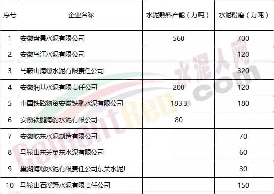 安徽省馬鞍山市水泥企業(yè)名單
