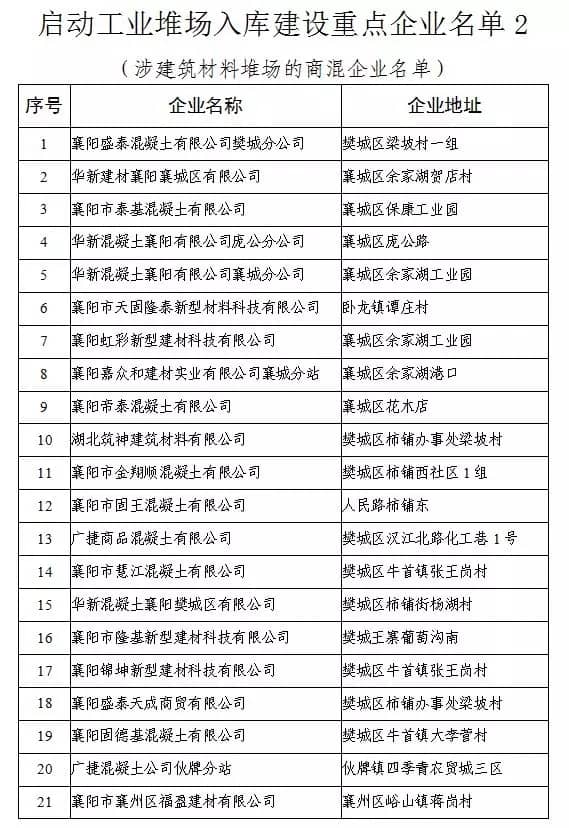 啟動工業(yè)堆場入庫建設(shè)重點(diǎn)企業(yè)名單