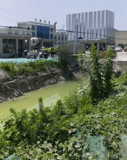 6月22日,本網(wǎng)一行來到了舉報(bào)中的“河南鴻基混凝土有限公司”門前看到確實(shí)如群眾反映,門口噴淋設(shè)施沖洗車輛后污水直接排入北邊不足2米的公路溝內(nèi),院內(nèi)污水通過北墻內(nèi)水溝同樣排入公路溝內(nèi),深3米左右溝內(nèi)北段已被水泥廢物填平,南段剛剛清理,黃色經(jīng)水泥浸泡過的污水清晰可見,院內(nèi)看到有生產(chǎn)車間窗戶、水泥罐頂部排放水泥粉塵后留下的痕跡。