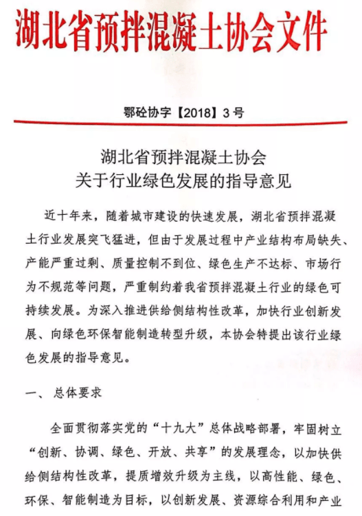 湖北省預(yù)拌混凝土協(xié)會(huì)關(guān)于湖北省預(yù)拌混凝土行業(yè)發(fā)展指導(dǎo)意見如下: