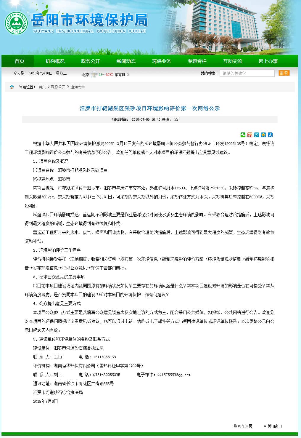 【水泥人網(wǎng)】近日,湖南岳陽市環(huán)保局發(fā)布汨羅市打靶湖采區(qū)采砂項(xiàng)目環(huán)境影響評價(jià)第一次網(wǎng)絡(luò)公示。公示顯示可采期為:7月1日-2月28日,年度控制采砂量:500萬噸。這預(yù)示著洞庭湖全面采砂即將開始,此前規(guī)劃總量為18000萬噸,這或?qū)槟壳伴L江流域砂石供應(yīng)亂象的穩(wěn)定打一針鎮(zhèn)定劑。公示原文如下:
