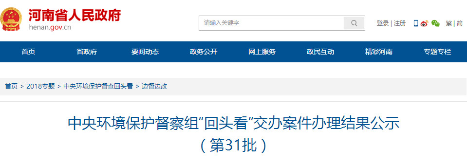 【水泥人網(wǎng)】日前,河南省人民政府官網(wǎng)發(fā)布《中央環(huán)境保護督察組“回頭看”交辦案件辦理結果公示(第31批)》名單,其中涉及天瑞集團、同力水泥等水泥企業(yè),詳情如下: