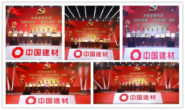 大會上,表彰了徐州中聯(lián)水泥有限公司制造車間黨支部等215個“五好黨支部”、成都建材院(埃及GOE Beni Suef項目)電氣安裝崗等976個“黨員先鋒崗”,并為代表授牌。發(fā)布了山東工陶院136支部工作法等20個“優(yōu)秀黨建工作品牌”,并授牌。對中國巨石黨建“三建”工作法、中材國際(南京)海外黨建135工作模式、蚌埠院黨建“六三”標準工作法、徐州中聯(lián)“螺絲釘”緊固工程、中復連眾“六個工程”、中國建材總院青年科技人才精準化培養(yǎng)工程、南京玻纖院“1+N”黨員政治生日活動、北新建材紅色標桿計劃、貴州三都“三五五”支部工作法、泰山玻纖黨群共建“五個一體化”工程等“十佳黨建工作品牌”集中展播,宣讀評委會評語,并由宋志平同志逐一為入選單位授牌。