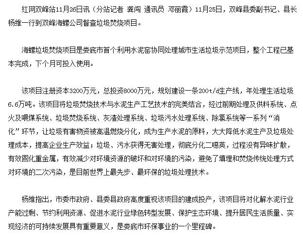雙峰海螺+垃圾焚燒,大量有關(guān)稱贊該項(xiàng)目的報(bào)道