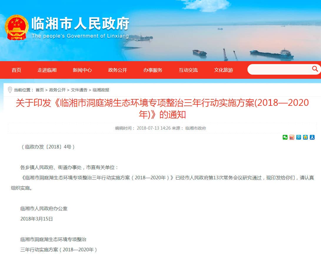 日前,湖南臨湘市政府發(fā)布“關(guān)于印發(fā)《臨湘市洞庭湖生態(tài)環(huán)境專項(xiàng)整治三年行動(dòng)實(shí)施方案(2018—2020年)》的通知”,要求:嚴(yán)厲整頓湖區(qū)采砂秩序。全面禁止自然保護(hù)區(qū)、飲用水源保護(hù)區(qū)等水域采砂,規(guī)范河湖采砂行為。實(shí)施24小時(shí)嚴(yán)格監(jiān)管,鞏固禁采成果。全面清理整頓采砂運(yùn)砂船只,登記造冊(cè),安裝衛(wèi)星定位,指定??克?,對(duì)無證采砂作業(yè)船只暫扣、封存或拆除采砂設(shè)備。