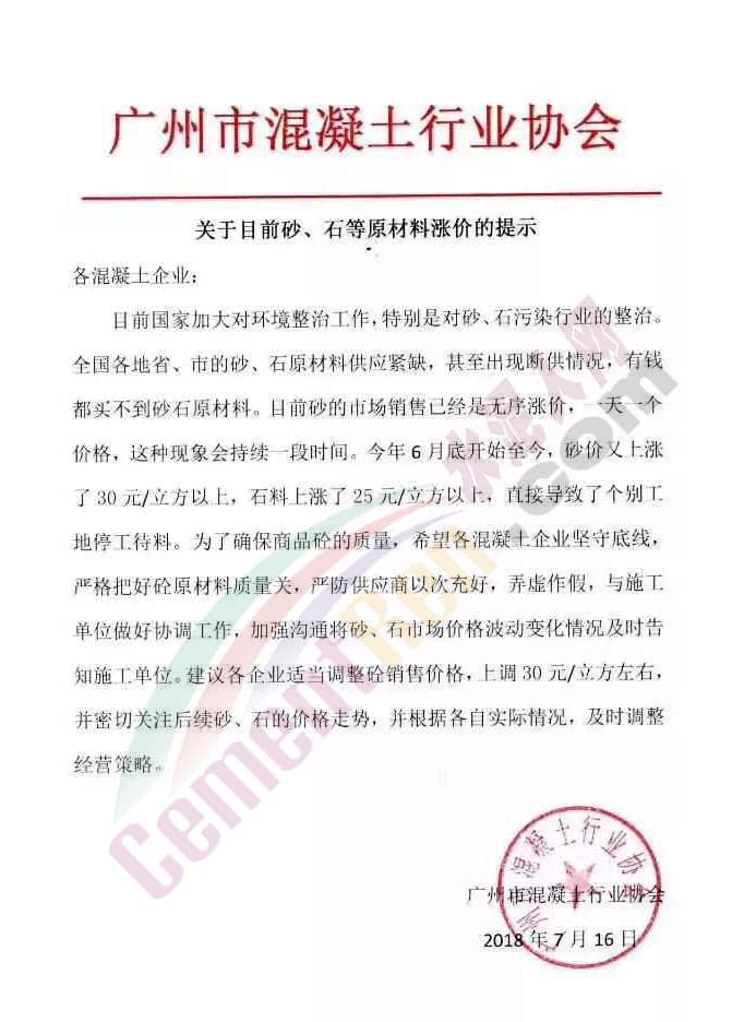 廣州、深圳混凝土協(xié)會(huì)相繼發(fā)出調(diào)價(jià)提示函