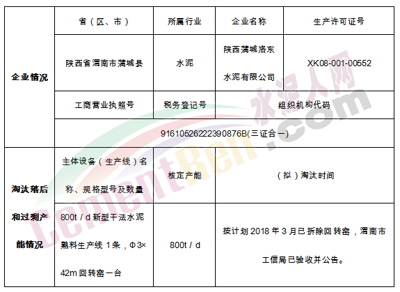 陜西蒲城洛東水泥有限公司產(chǎn)能置換方案