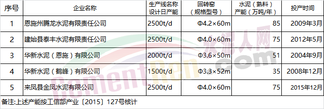 依據(jù)以上公告信息陜西省將淘汰日產(chǎn)800噸熟料生產(chǎn)線,用以置換到湖北恩施自治州咸豐縣新建日前3200噸熟料生產(chǎn)線。據(jù)水泥人網(wǎng)了解,湖北恩施自治州現(xiàn)有五條熟料生產(chǎn)線,熟料產(chǎn)能產(chǎn)按照工信部產(chǎn)業(yè)[2015]127號文件合計共321萬噸/年。通過技改目前實際產(chǎn)能超過550萬噸/年。