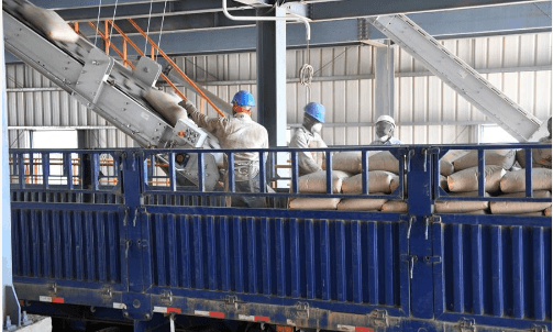 索科托水泥廠生產(chǎn)的水泥出庫(kù)。