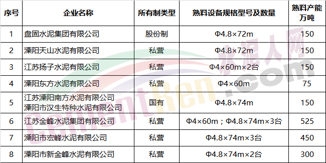 常州市水泥熟料企業(yè)名單
