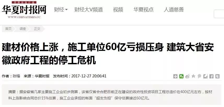 2017年12月27日,華夏時(shí)報(bào)一篇關(guān)于“建材價(jià)格上漲”的報(bào)道迅速傳遍“工程圈”,一時(shí)間議論紛紛,有同情有指責(zé),更多的是期待。