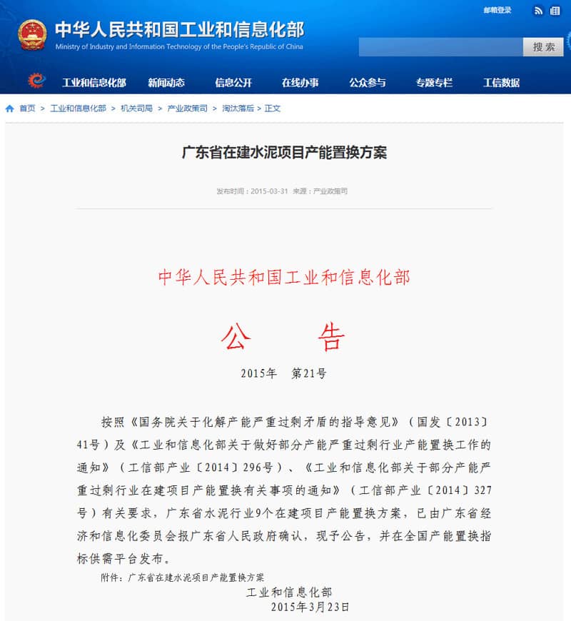 據(jù)了解,這家企業(yè)是位于廣東省陽春市潭水鎮(zhèn)馬頭山的廣東春潭水泥制造有限公司。早在2015年四月廣東省就公布了水泥行業(yè)9個在建項目產(chǎn)能置換方案,共涉及產(chǎn)能置換2070萬噸。九個在建項目產(chǎn)能置換單位名單中就包括這家企業(yè)。