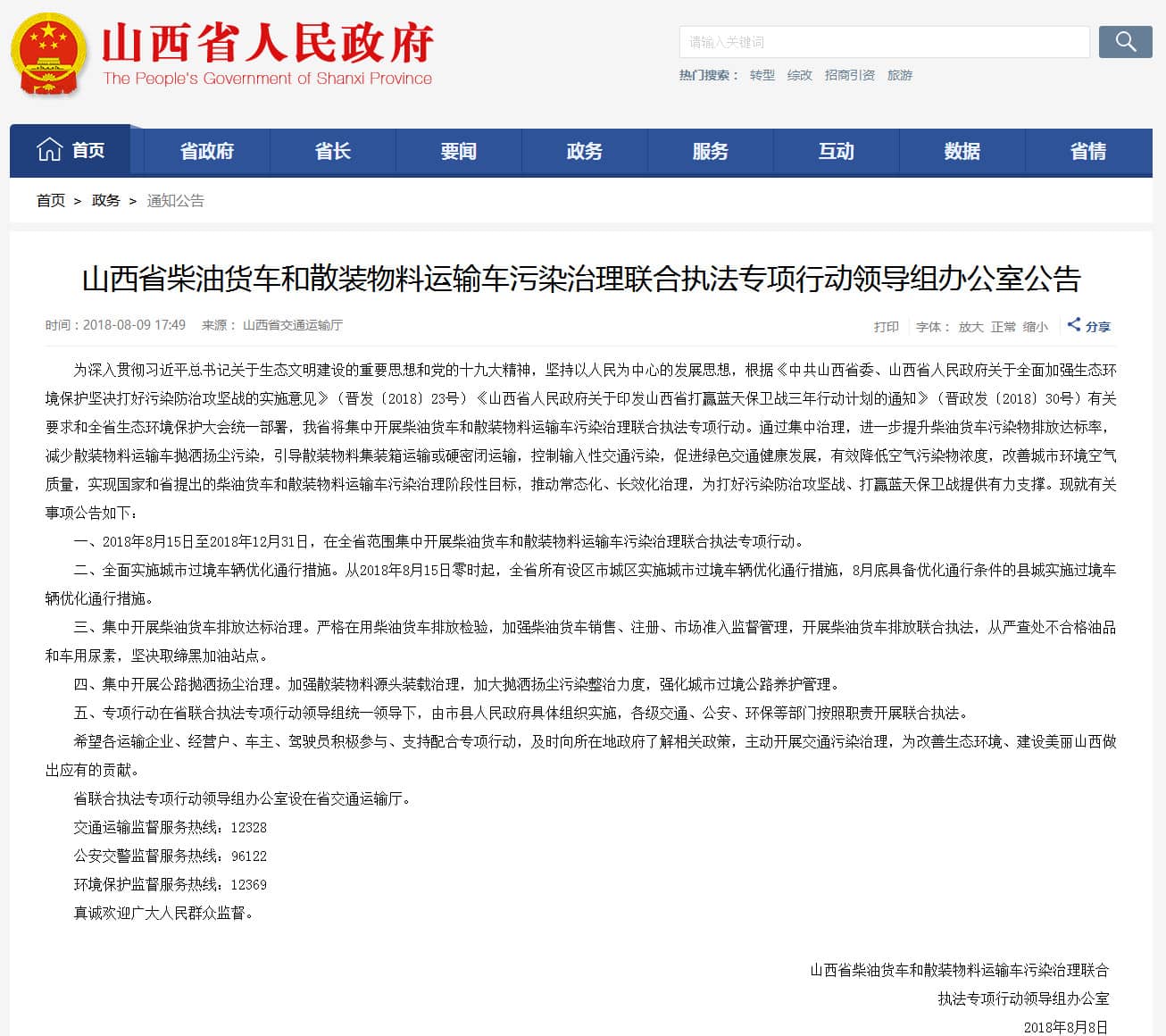 針對(duì)交通污染的突出問題,運(yùn)城市鹽湖區(qū)人民政府決定從即日起,禁止重型柴油貨車和散裝物料運(yùn)輸車在運(yùn)城市建成區(qū)內(nèi)通行,過境車輛優(yōu)化通行線路繞行高速公路行駛。現(xiàn)通告如下: