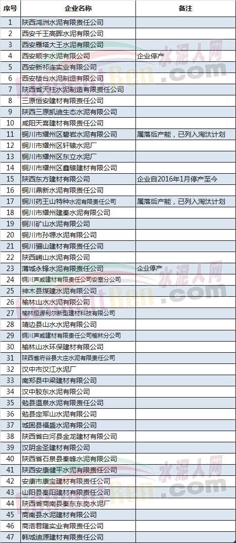 熟料生產(chǎn)線名單(部分)