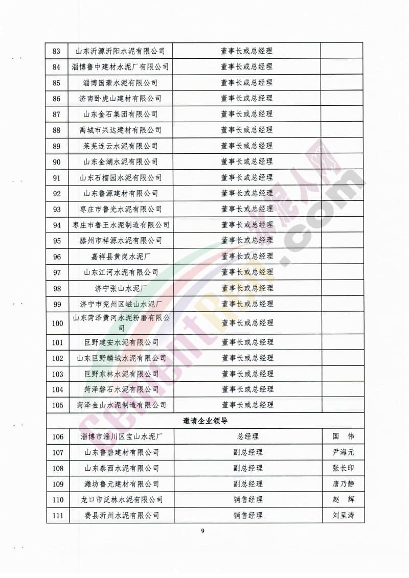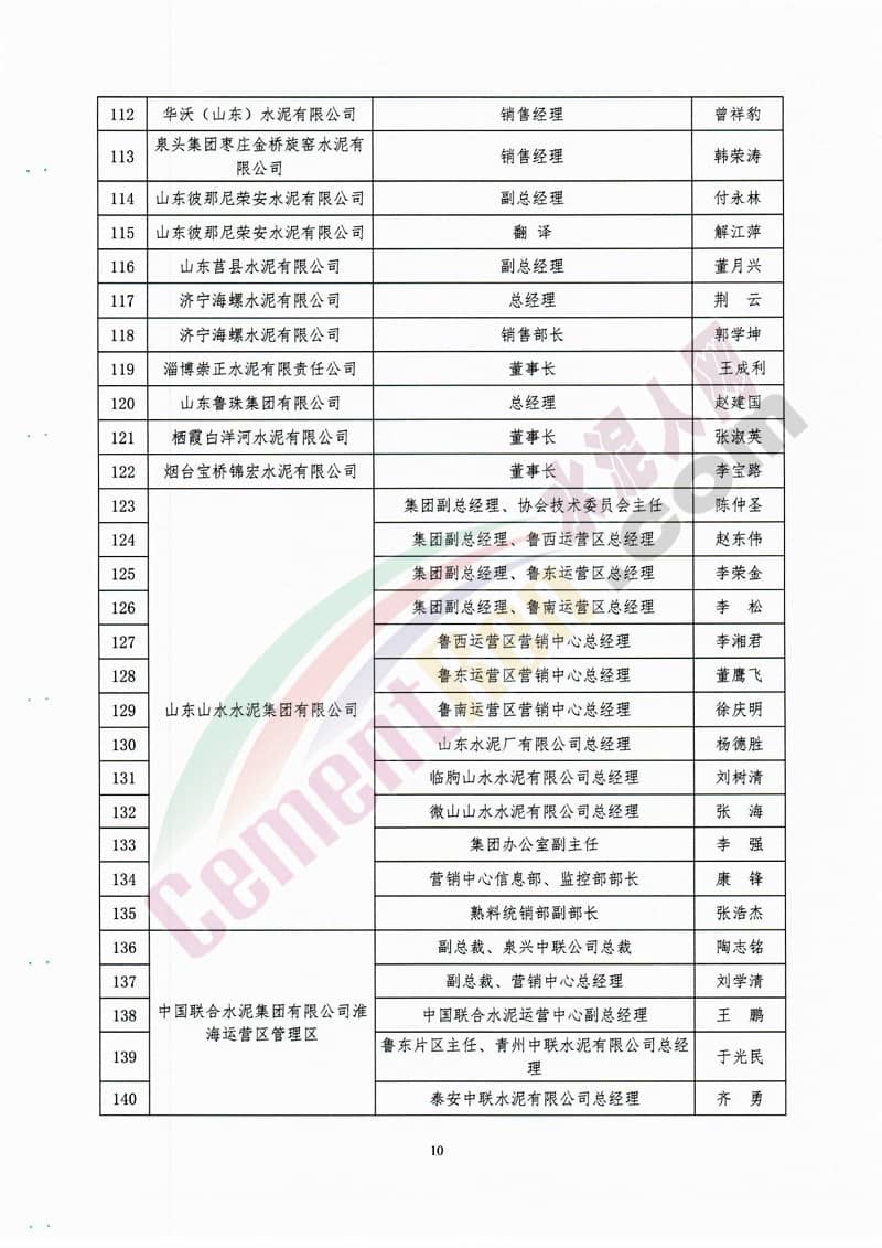 參加會議的主要領(lǐng)導(dǎo)和代表有山東省經(jīng)信委副主任王超英,中國水泥協(xié)會常務(wù)副會長孔祥忠,中國水泥協(xié)會副會長秘書長、中聯(lián)水泥集團黨委書記、董事長崔星太,山東省環(huán)保廳大氣污染防治處處長肖紅,山東省社會組織管理局副局長邢洪銳,中國水泥協(xié)會副會長、中聯(lián)水泥集團總經(jīng)理孫建成,山東建材工業(yè)協(xié)會會長李峰、山東省水泥行業(yè)協(xié)會會長趙利平等。