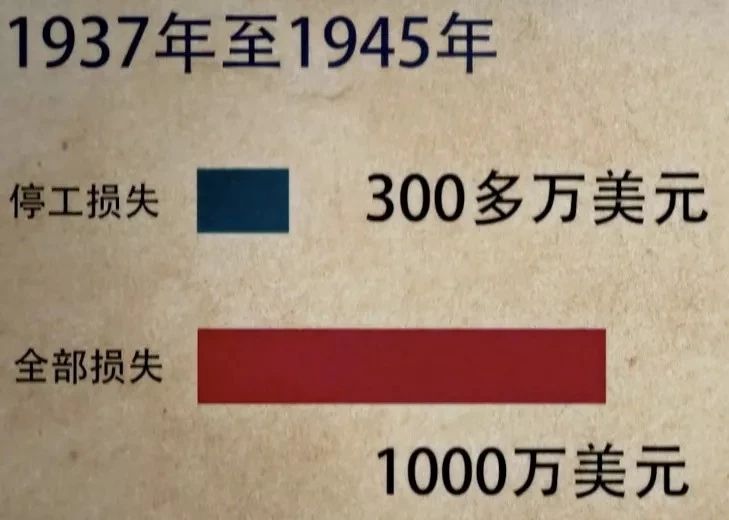 據(jù)戰(zhàn)后1946年的數(shù)據(jù)統(tǒng)計(jì),從1937年至1945年,僅工廠停工這一項(xiàng),損失就高達(dá)300多萬(wàn)美元。