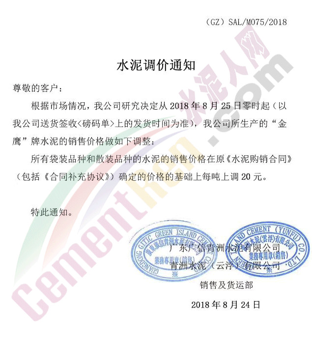 【水泥人網(wǎng)】近幾日華南珠三角區(qū)域處在一片漲價潮中,先后有二十余家水泥企業(yè)發(fā)布提價通知。截止昨日晚間,本輪的水泥漲價潮漸近尾聲,該漲的品牌都漲了,還沒漲的這兩天也將跟漲,水泥漲了,砂漲了,混凝土也漲了。