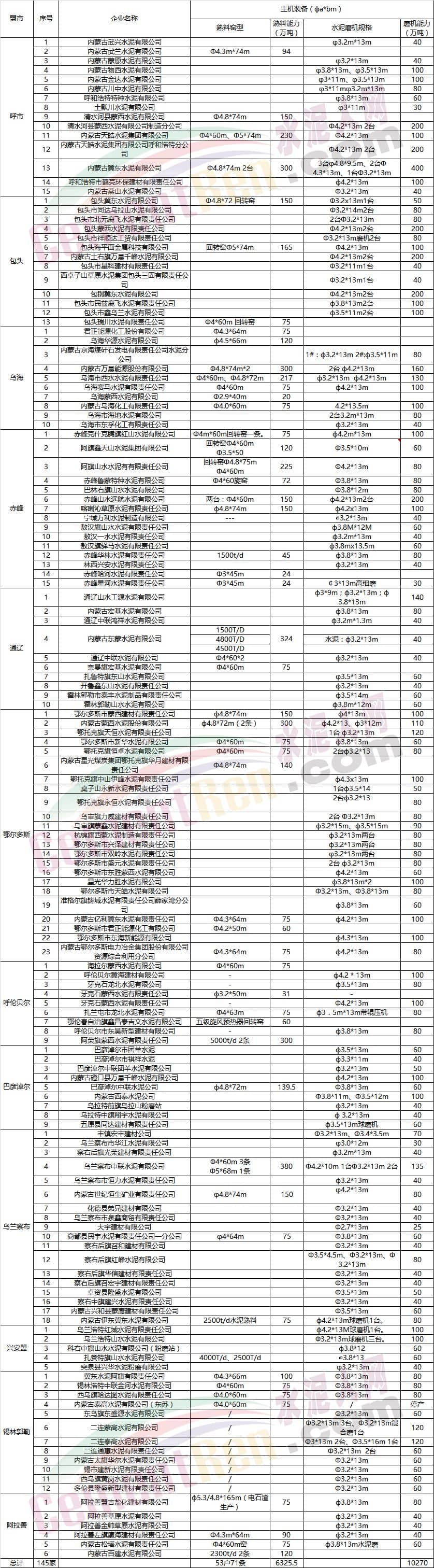 內蒙古自治區(qū)水泥行業(yè)基本情況表