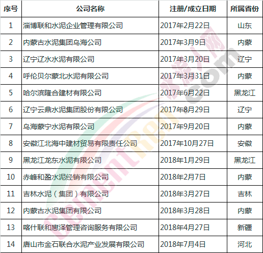 截止目前各省市成立的聯(lián)合公司保守估計已經有幾十家,水泥人網(wǎng)曾報道過的部分聯(lián)合公司名單如下: