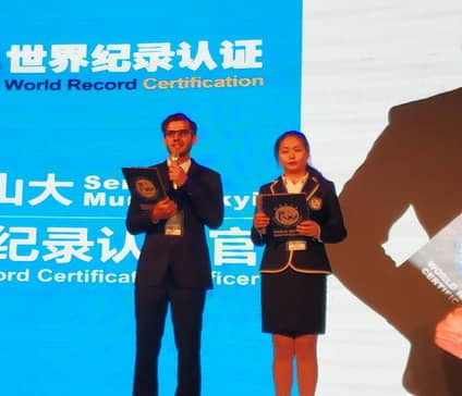 世界紀(jì)錄認(rèn)證官亞歷山大公布頒發(fā)證書(shū)