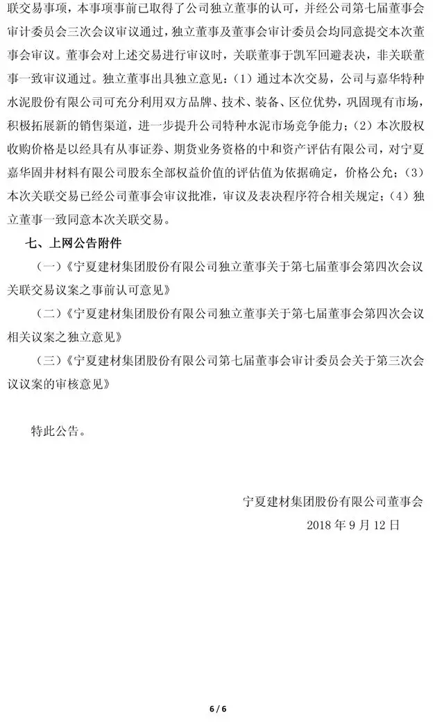 轉(zhuǎn)讓完成后,公司與嘉華股份分別持有嘉華固井50%股權(quán),公司合并嘉華固井財(cái)務(wù)報(bào)表。本次收購(gòu)將拓展新的銷售渠道,提升公司特種水泥市場(chǎng)競(jìng)爭(zhēng)能力。公告原文如下: