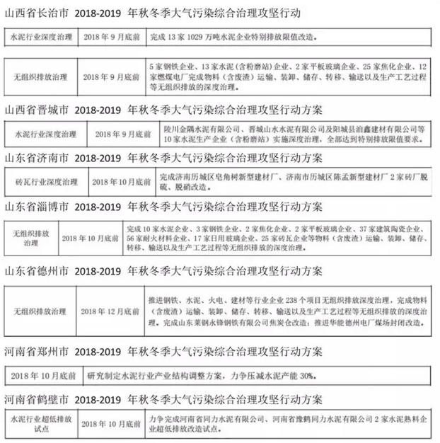 自2018年10月 1 日起,嚴(yán)格執(zhí)行火電、鋼鐵、石化、化工、有色(不含氧化鋁)、水泥行業(yè)以及工業(yè)鍋爐大氣污染物特別排放限值(見附件),推進(jìn)重點(diǎn)行業(yè)污染治理設(shè)施升級改造。繼續(xù)推進(jìn)工業(yè)企業(yè)無組織排放治理,在安全生產(chǎn)許可條件下,實(shí)施封閉儲存、密閉輸送、系統(tǒng)收集,2018 年 12 月底前基本完成。