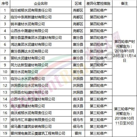 河北省邯鄲市《2018-2019年重點(diǎn)行業(yè)采暖季差異化錯(cuò)峰生產(chǎn)方案》征求意見(jiàn)稿公示版發(fā)布,其中針對(duì)水泥行業(yè)錯(cuò)峰生產(chǎn)政策措施有重大調(diào)整。
